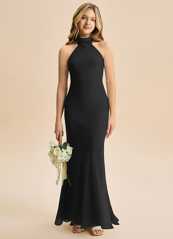Meerjungfrau-Linie Hoher Kragen Chiffon Kleid Schwarz