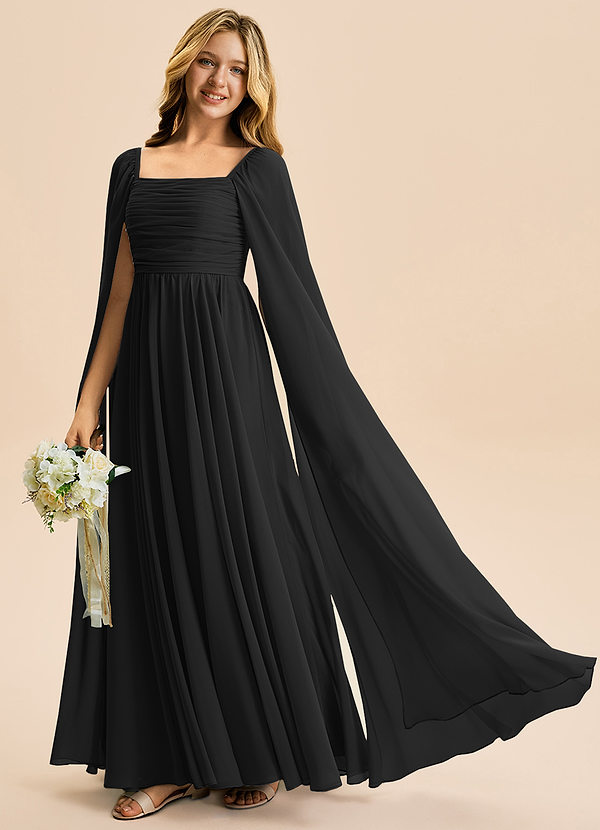 A-Linie Plissee Chiffon Kleid Schwarz