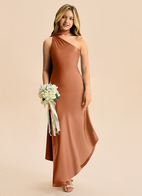 A-Linie Schleifen Stretch-Satin Kleid Kupfer