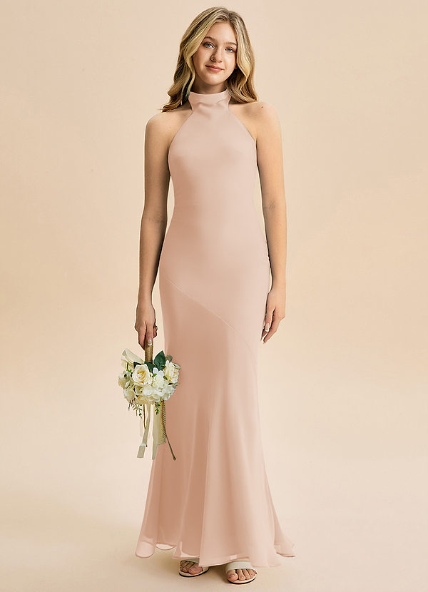 Meerjungfrau-Linie Hoher Kragen Chiffon Kleid Englisches Rosa