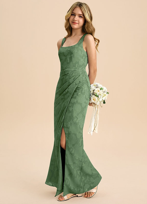 A-Linie Schleifen Blumen-Burnout Kleid Eukalyptus