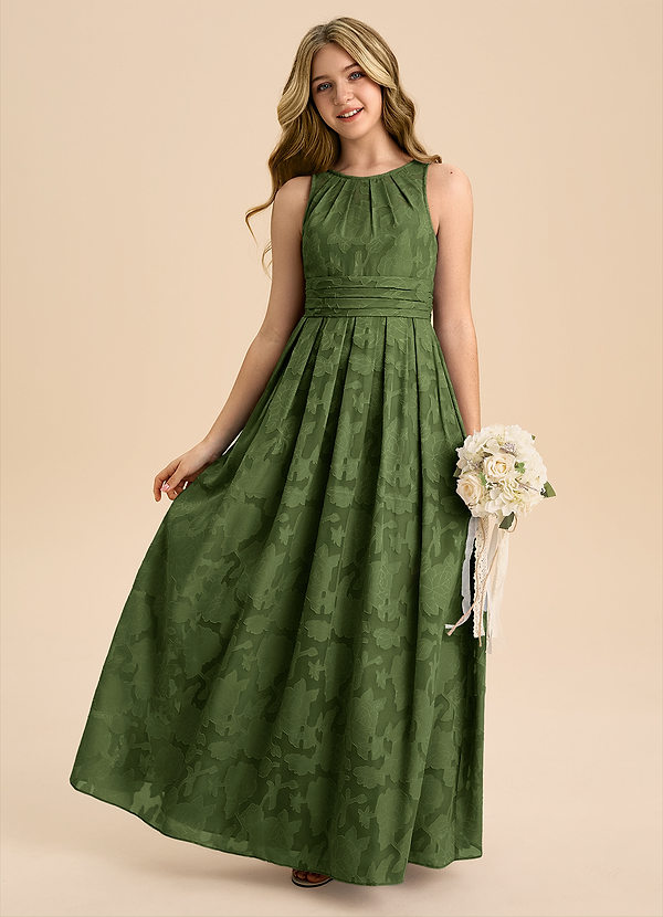 A-Linie Plissee Blumen-Burnout Kleid Olivgrün