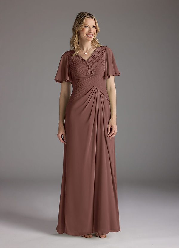 A-Linie V-Hals Gefaltet Chiffon Kleid Espresso