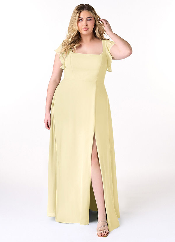 A-Linie Plissee Chiffon Kleid Zitronensorbet