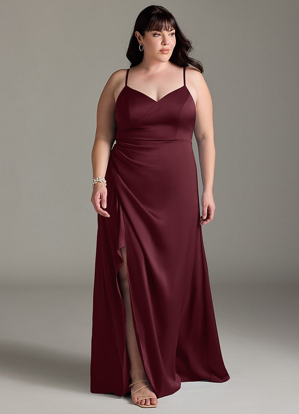A-Linie Korsett Stretch-Satin Kleid Cabernetrot