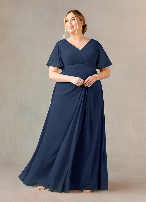 A-Linie V-Hals Gefaltet Chiffon Kleid Dunkelmarine