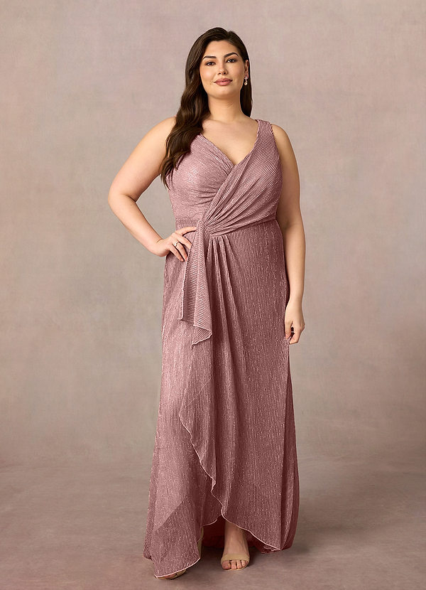 A-Linie Plissee Matte Satin Kleid Altrosa