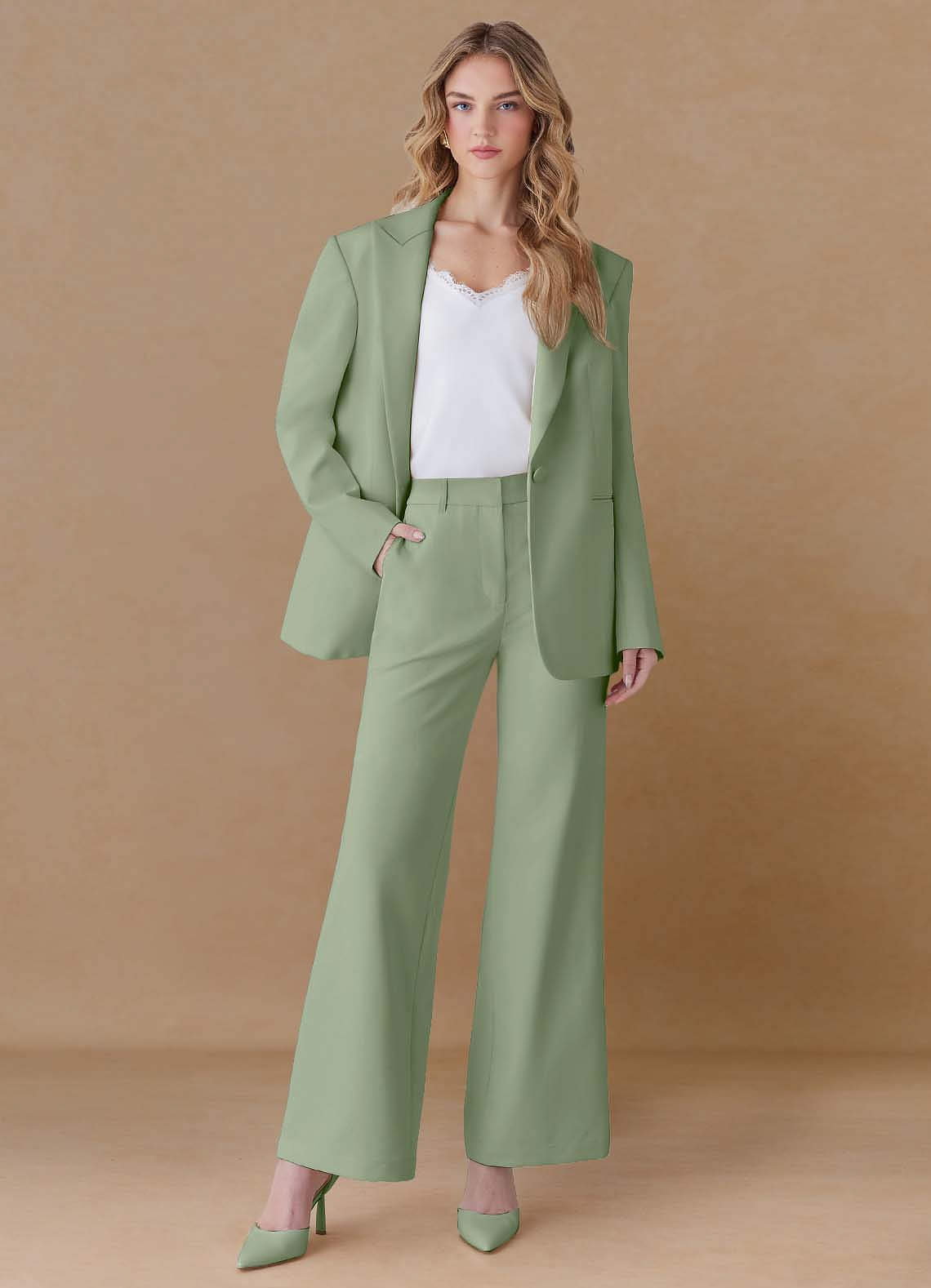 Amelia Staubiger Salbeigrün Hochwertiger, zweiteiliger Oversize-Anzug aus hochwertigem Webmaterial