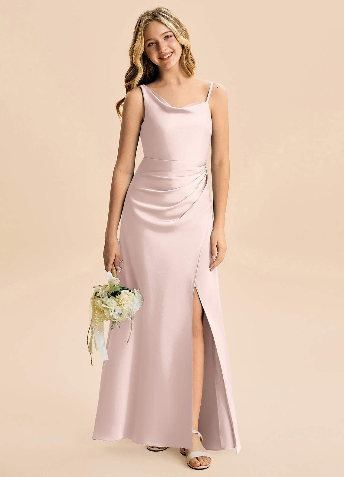 A-Linie Plissee Stretch-Satin Kleid Zartrosa