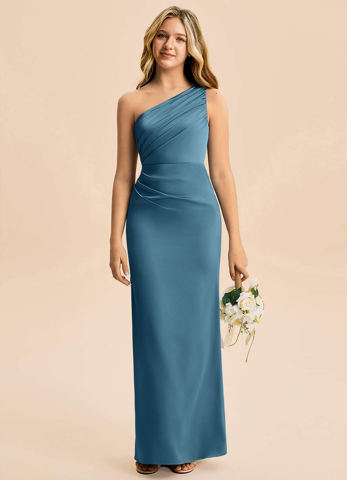 Etui Plissee Stretch-Satin Kleid Bermudablau