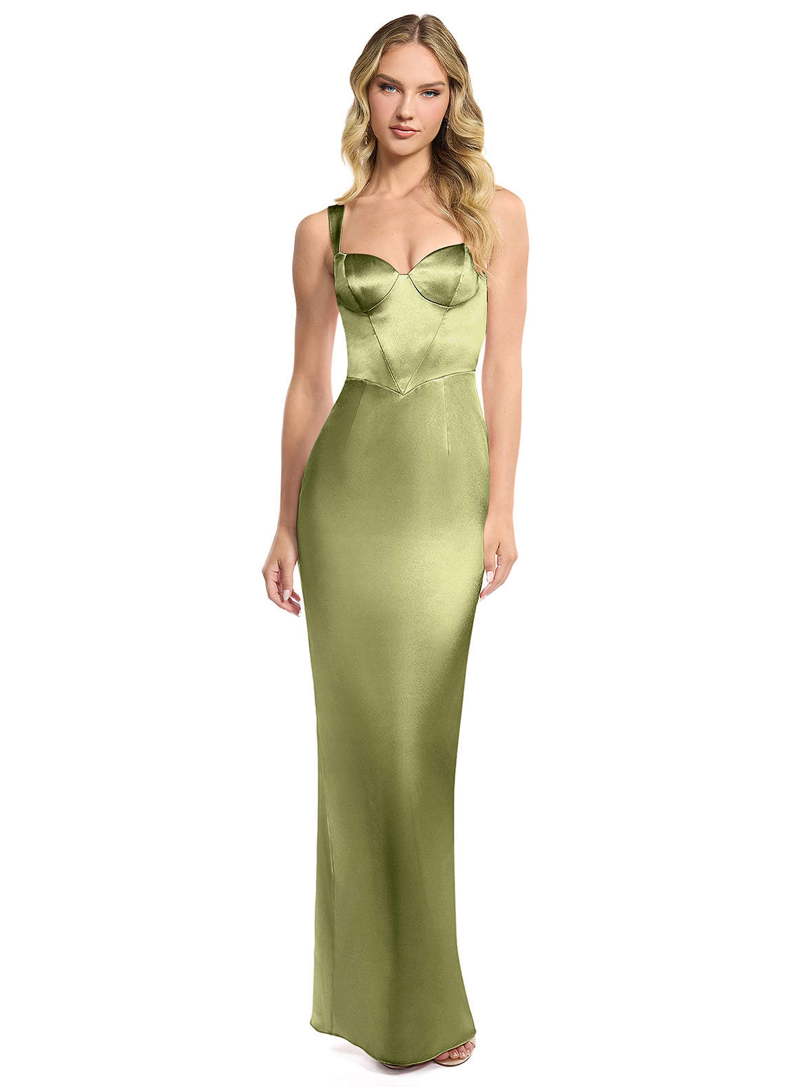 Etui Herzausschnitt Metallischer Satin Kleid Dusty Sage