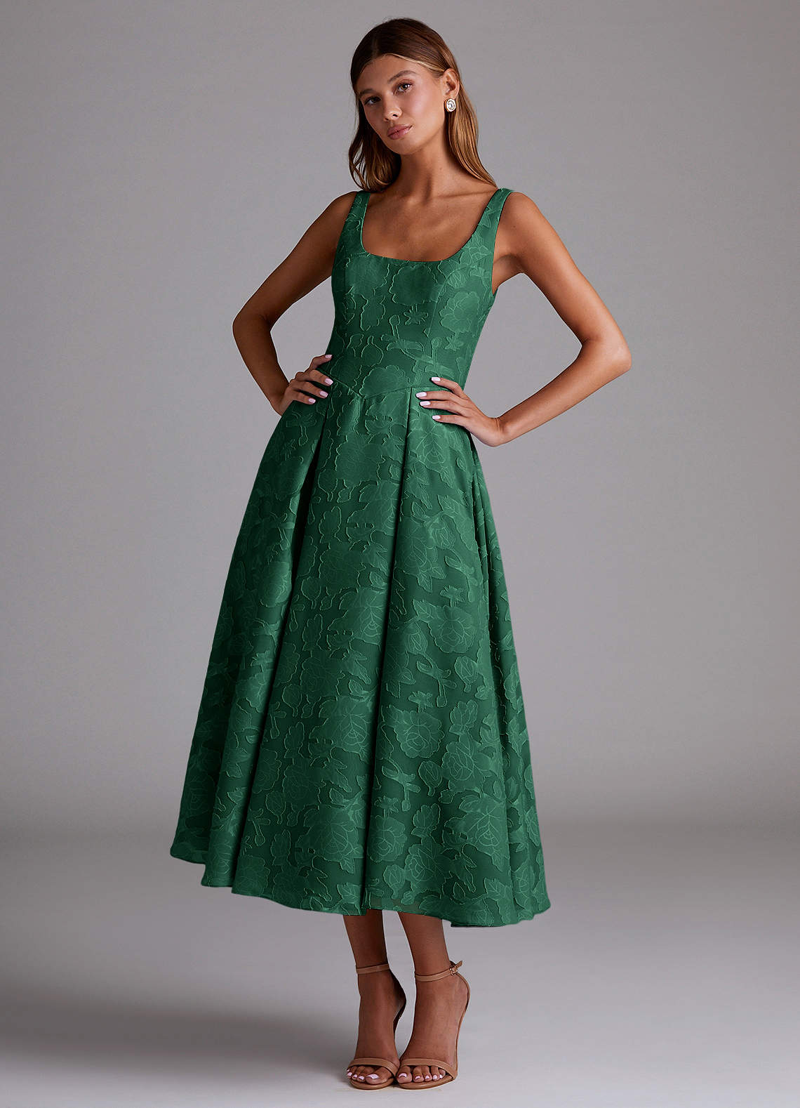 A-Linie Plissee Blumen-Burnout Kleid Dunkelgrün