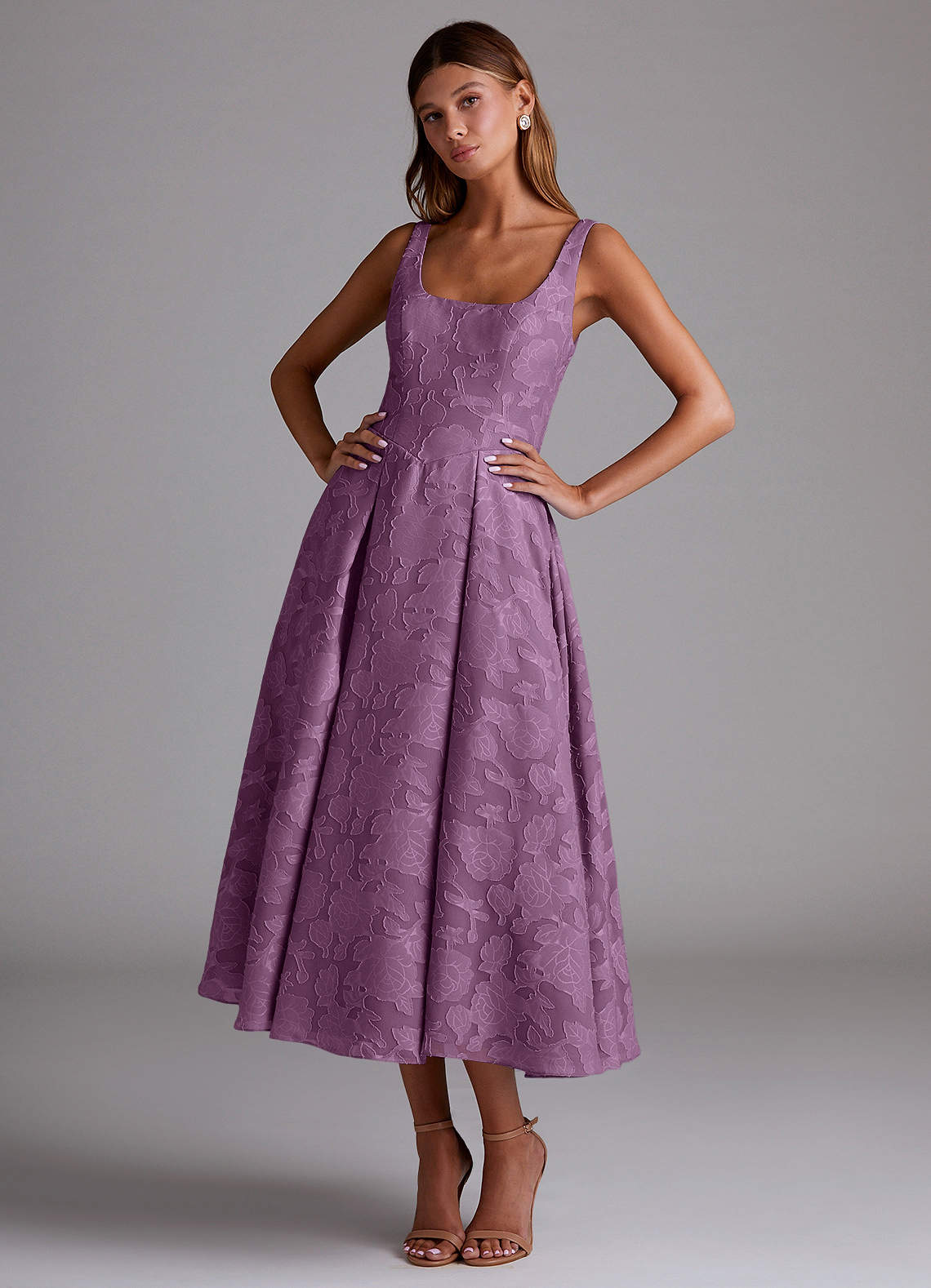 A-Linie Plissee Blumen-Burnout Kleid Blauregen