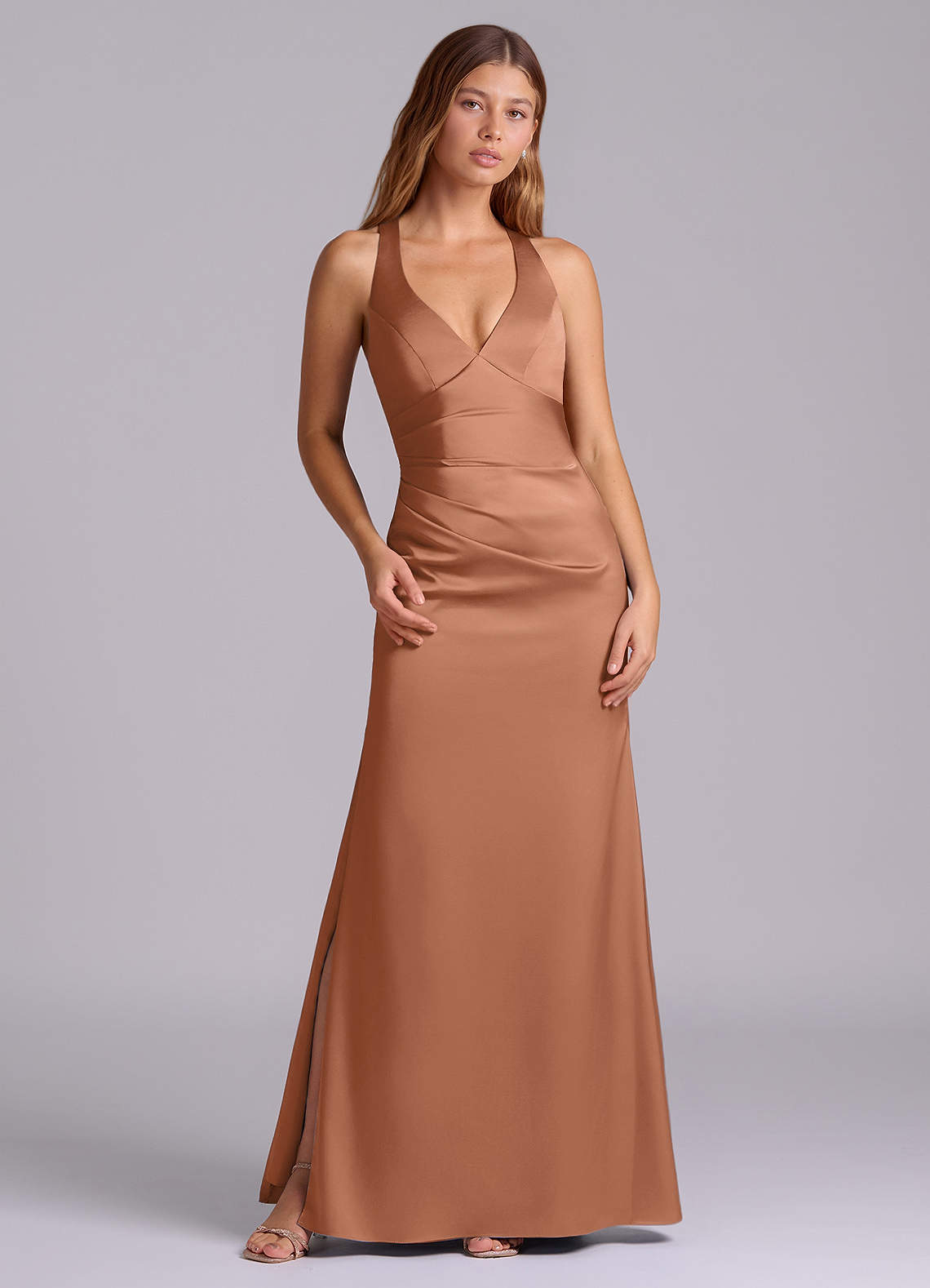 A-Linie Plissee Stretch-Satin Kleid Bronzer