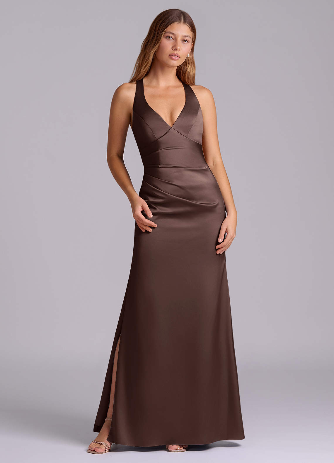 A-Linie Plissee Stretch-Satin Kleid Ganache