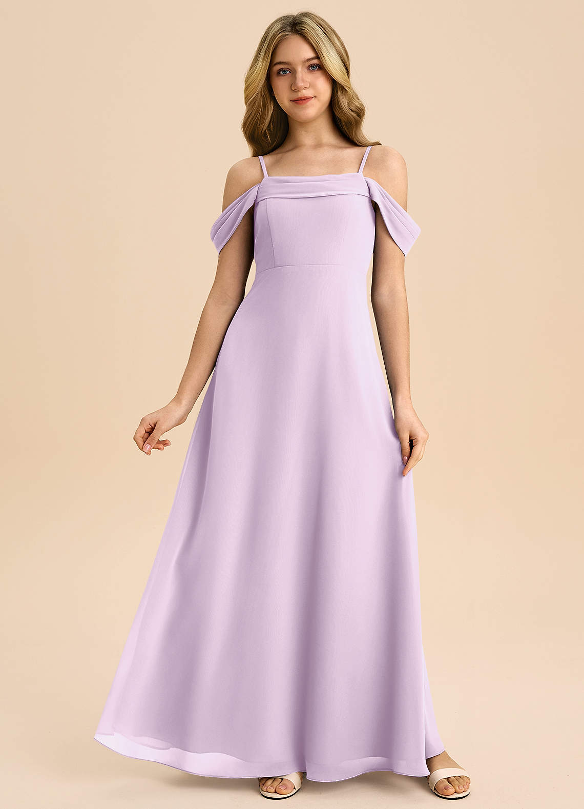 A-Linie Schulterfrei Chiffon Kleid Frostiges Flieder