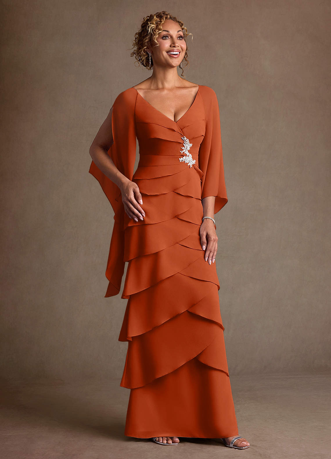 Etui Gestreift Chiffon Kleid Gebranntes Orange