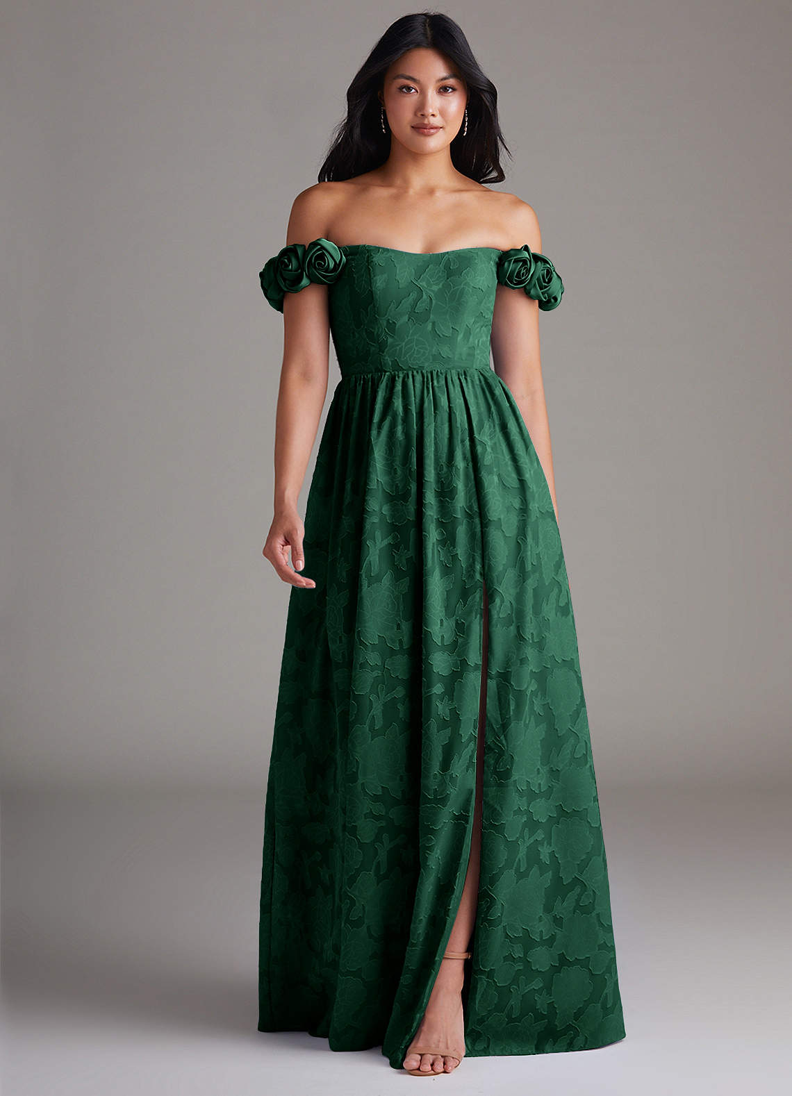 Wandelbar A-Linie Schulterfrei Blumen-Burnout Kleid Dunkelgrün