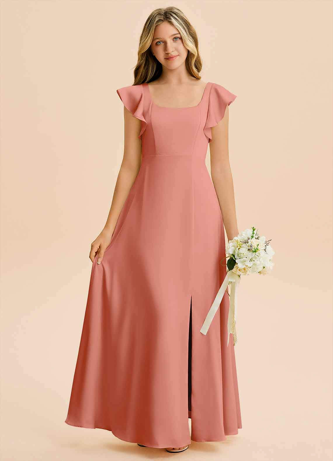 A-Linie Seitliche Cut-Outs Stretch-Satin Kleid Lachsrosa