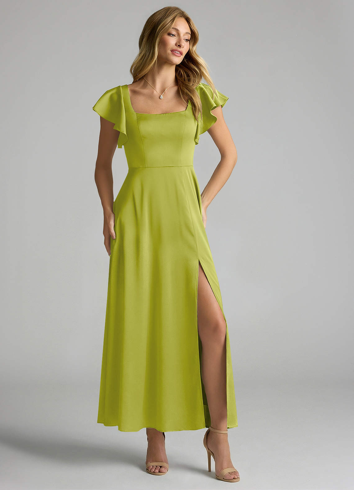 A-Linie Gestreift Stretch-Satin Kleid Zitronengras