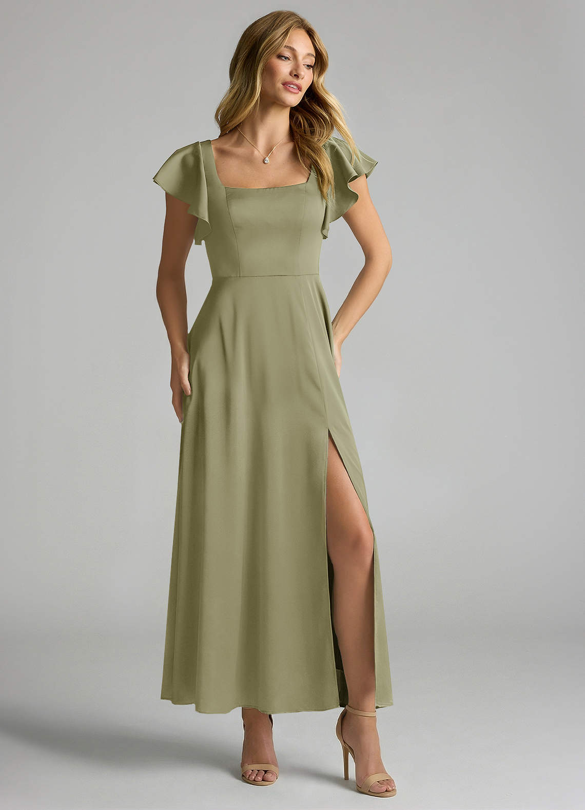 A-Linie Gestreift Stretch-Satin Kleid Pistazie