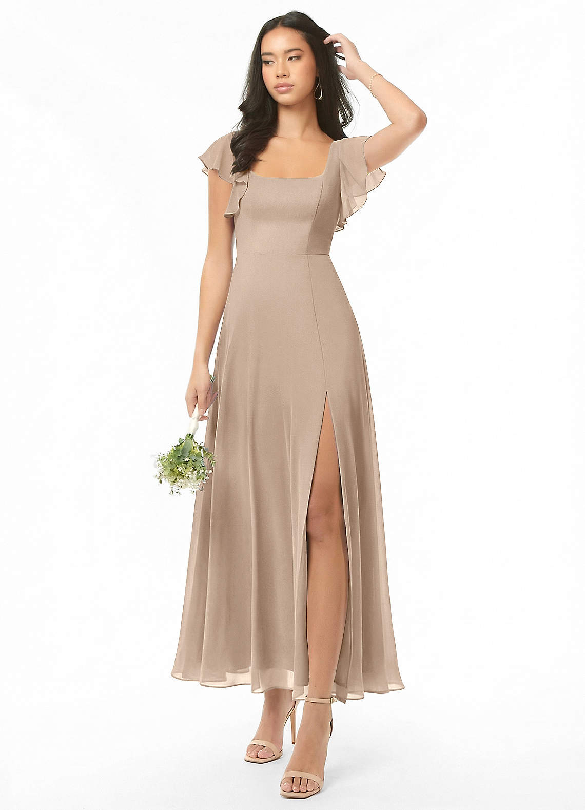 Azazie Bondi Brautjungfernkleider A-Linie Gestreift Chiffon Kleid Taupe image1