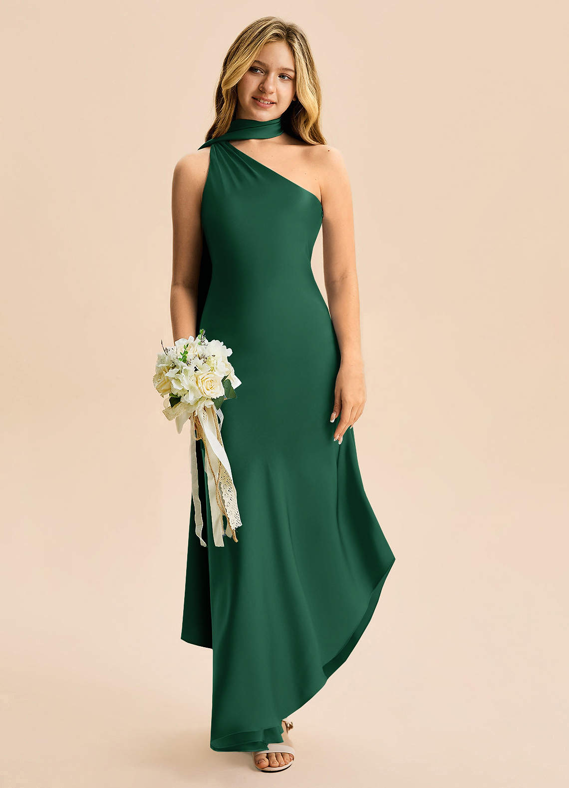 Etui Plissee Stretch-Satin Kleid Dunkelgrün