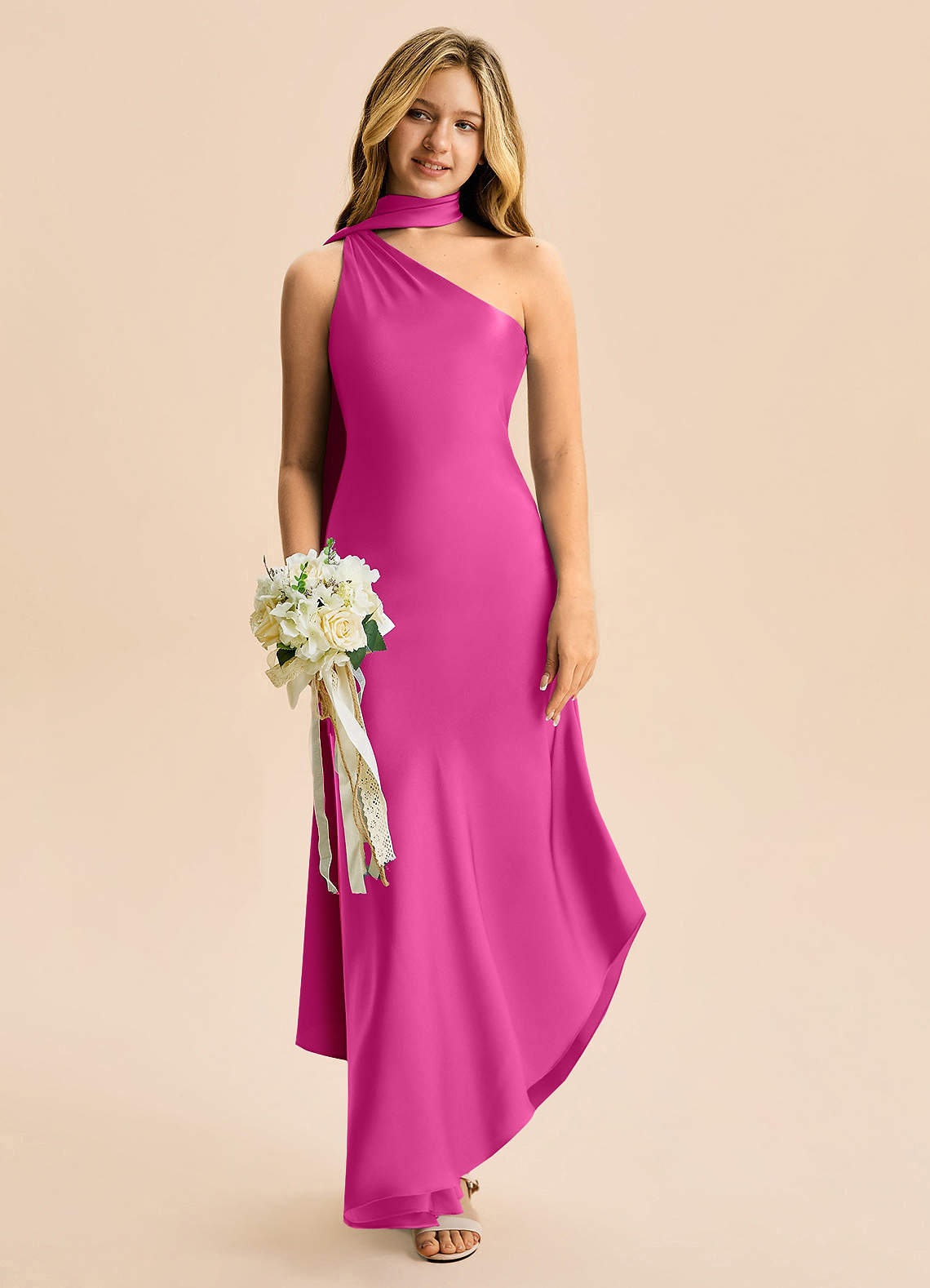 Etui Plissee Stretch-Satin Kleid Fuchsia