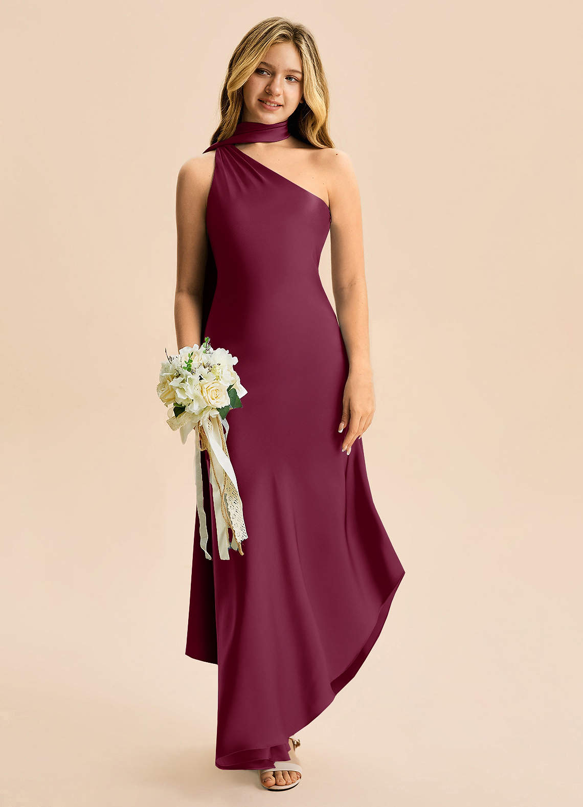Etui Plissee Stretch-Satin Kleid Maulbeerrot