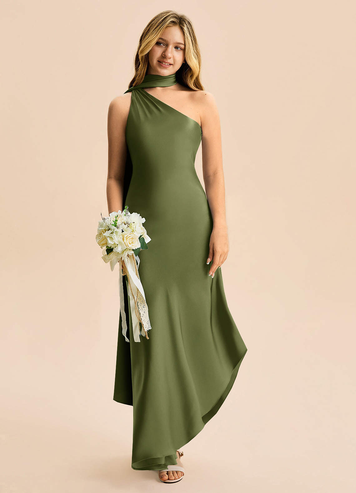 Etui Plissee Stretch-Satin Kleid Olivgrün