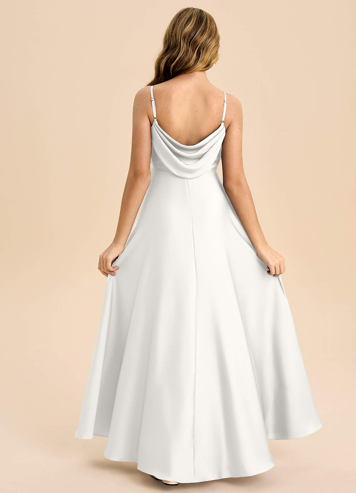 A-Linie Plissee Stretch-Satin Kleid Weiß