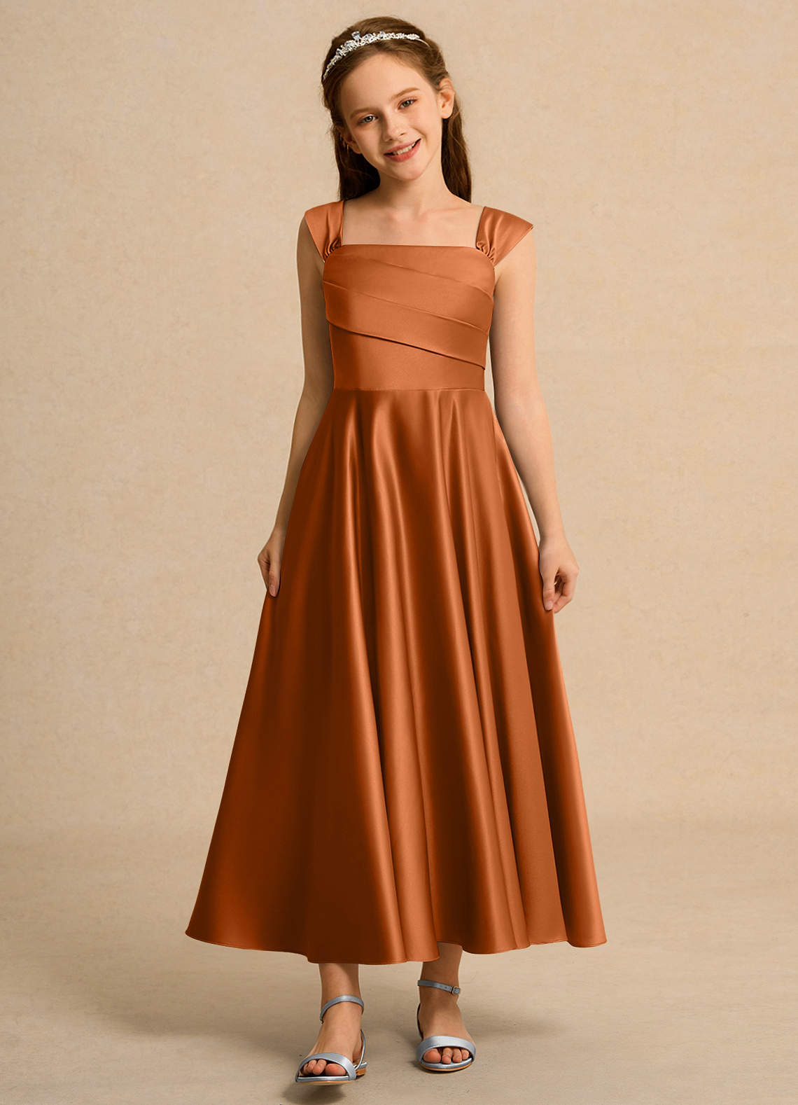 A-Linie Plissee Matte Satin Kleid Kupfer