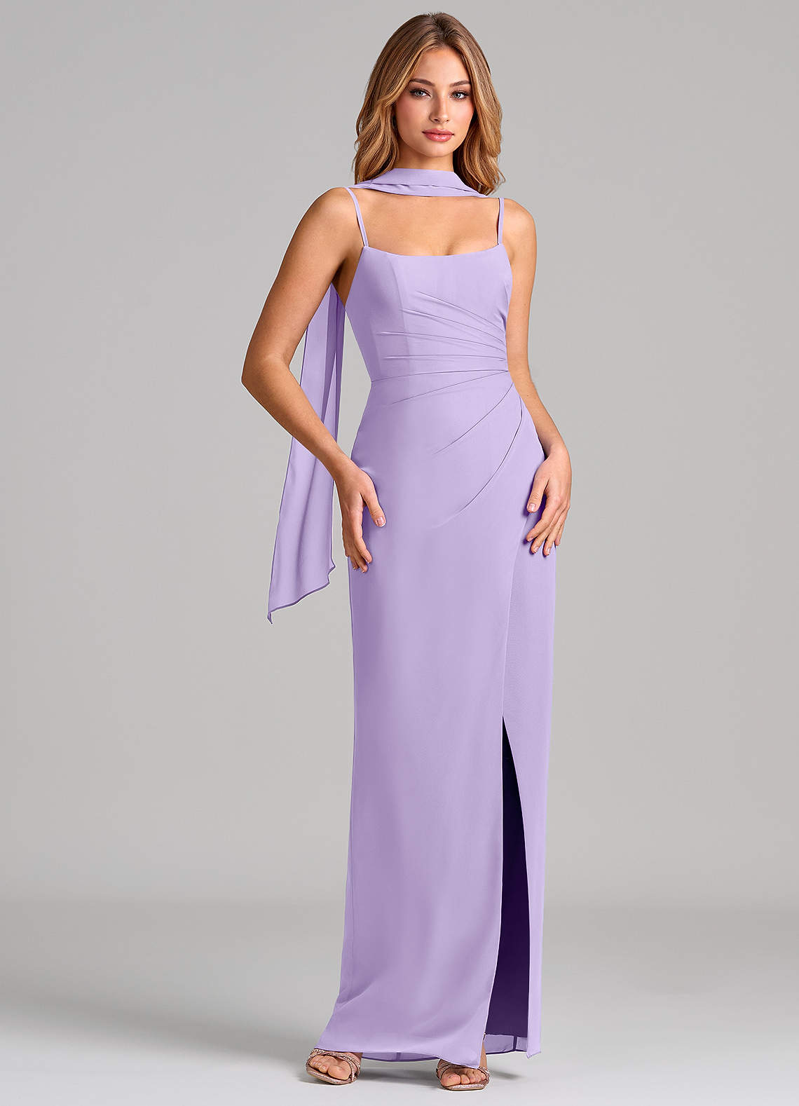 Etui Plissee Chiffon Kleid Flieder