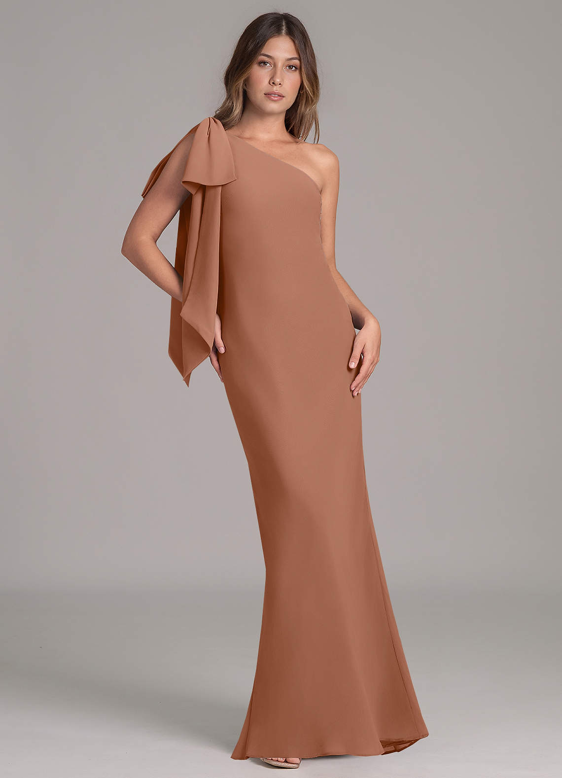 A-Linie One-Shoulder Chiffon Kleid Bronzer