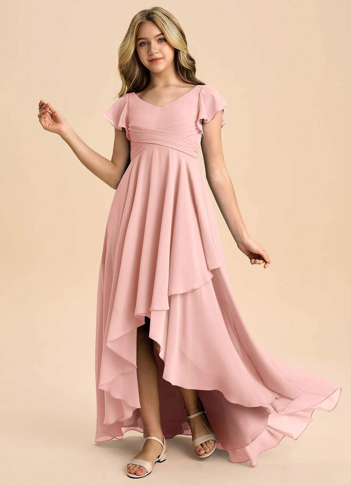 A-Linie Plissee Chiffon Kleid Rosettenrosa