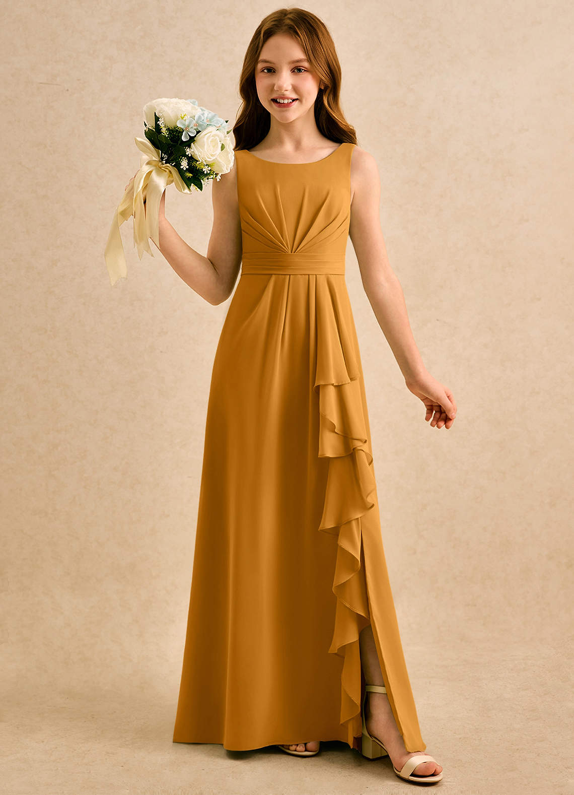 A-Linie Plissee Chiffon Kleid Butterscotch