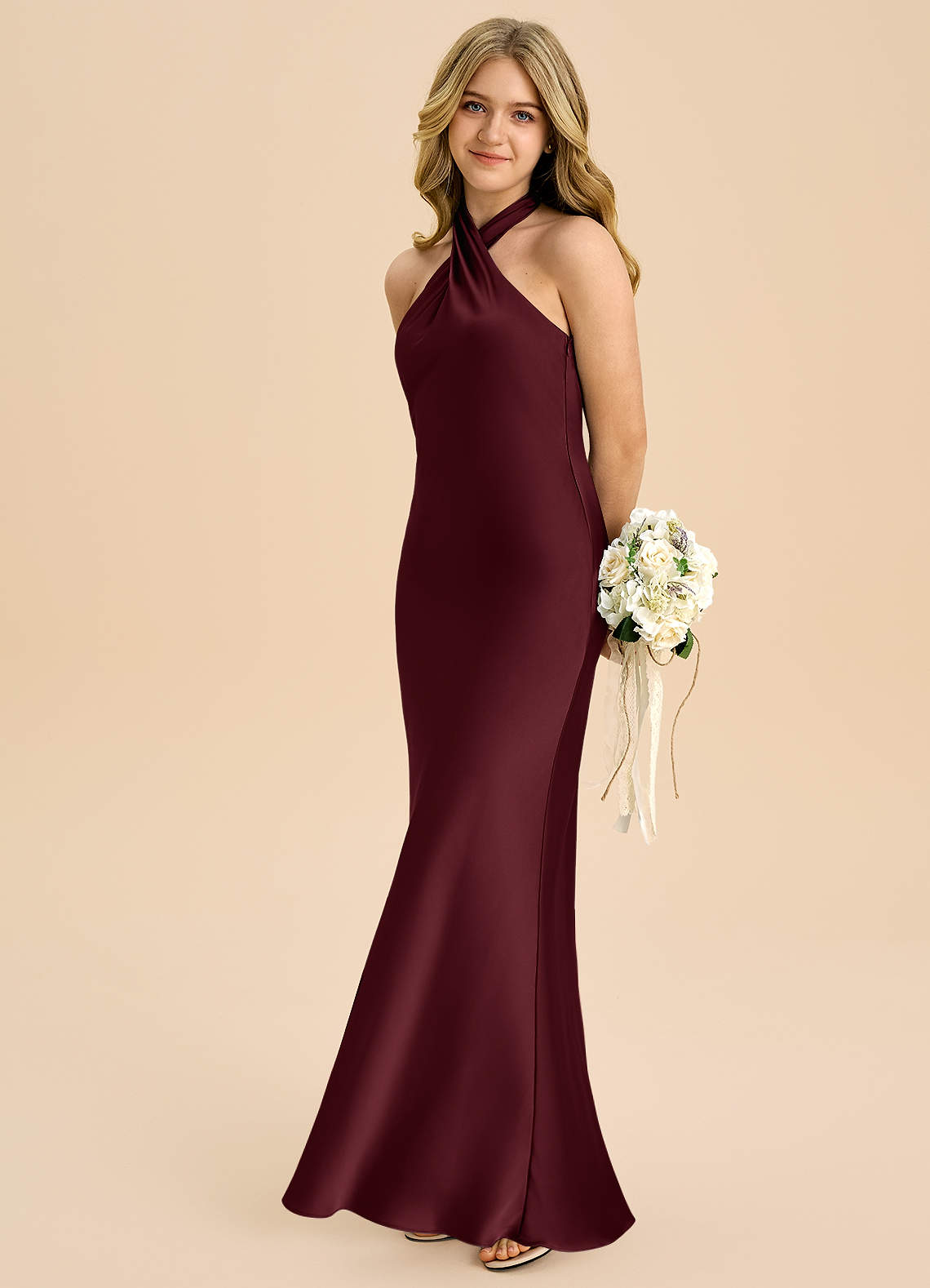 Etui Plissee Stretch-Satin Kleid Cabernetrot