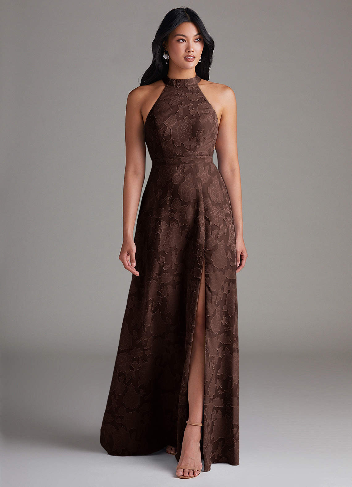 A-Linie Seitliche Cut-Outs Blumen-Burnout Kleid Ganache