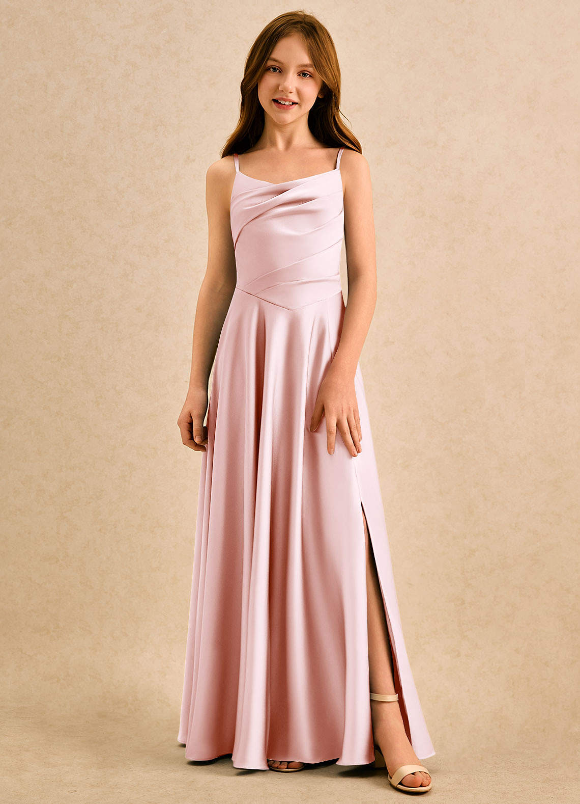 A-Linie Plissee Stretch-Satin Kleid Zartrosa