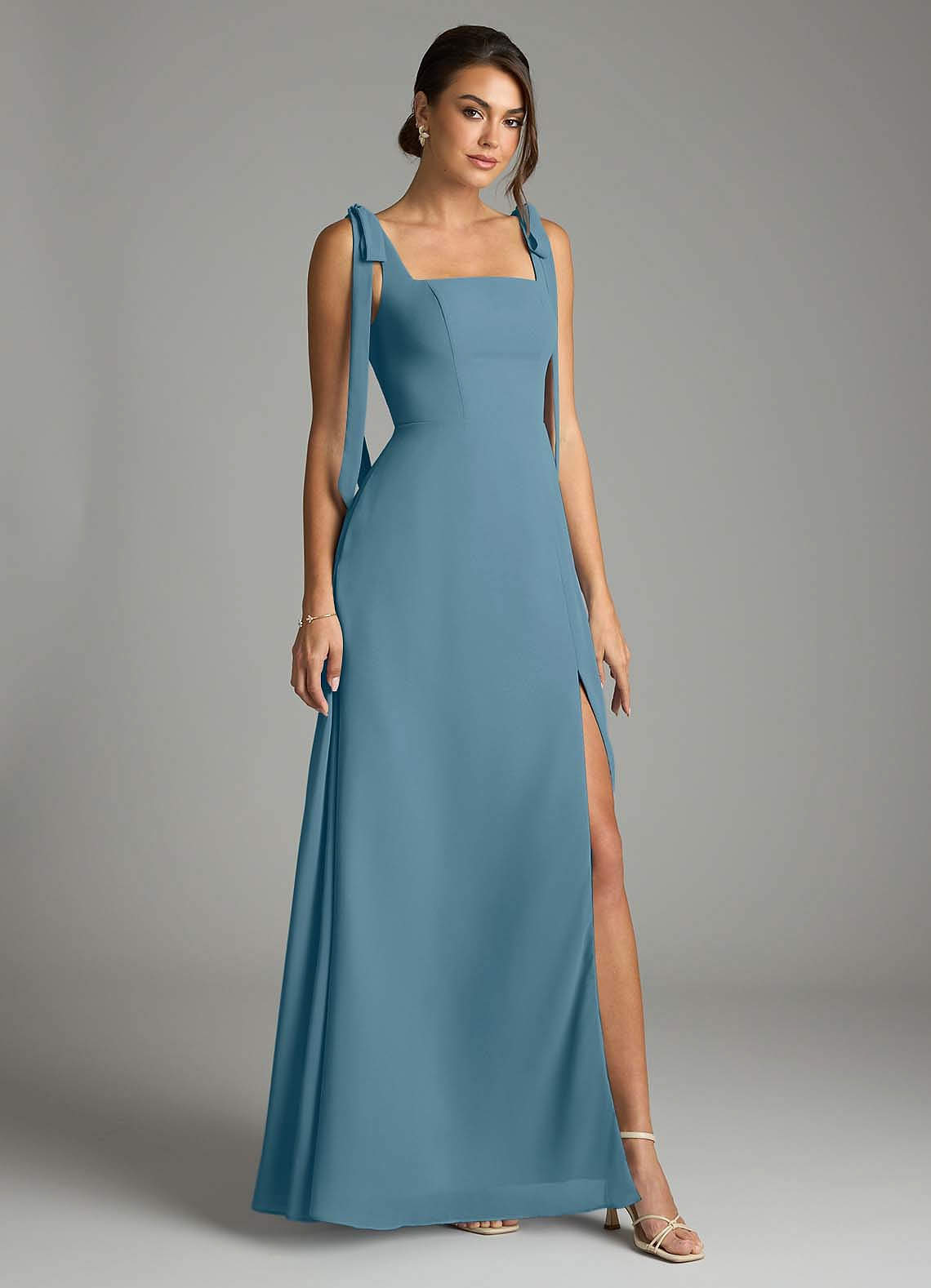 Wandelbar A-Linie mit Taschen Chiffon Kleid Bermudablau