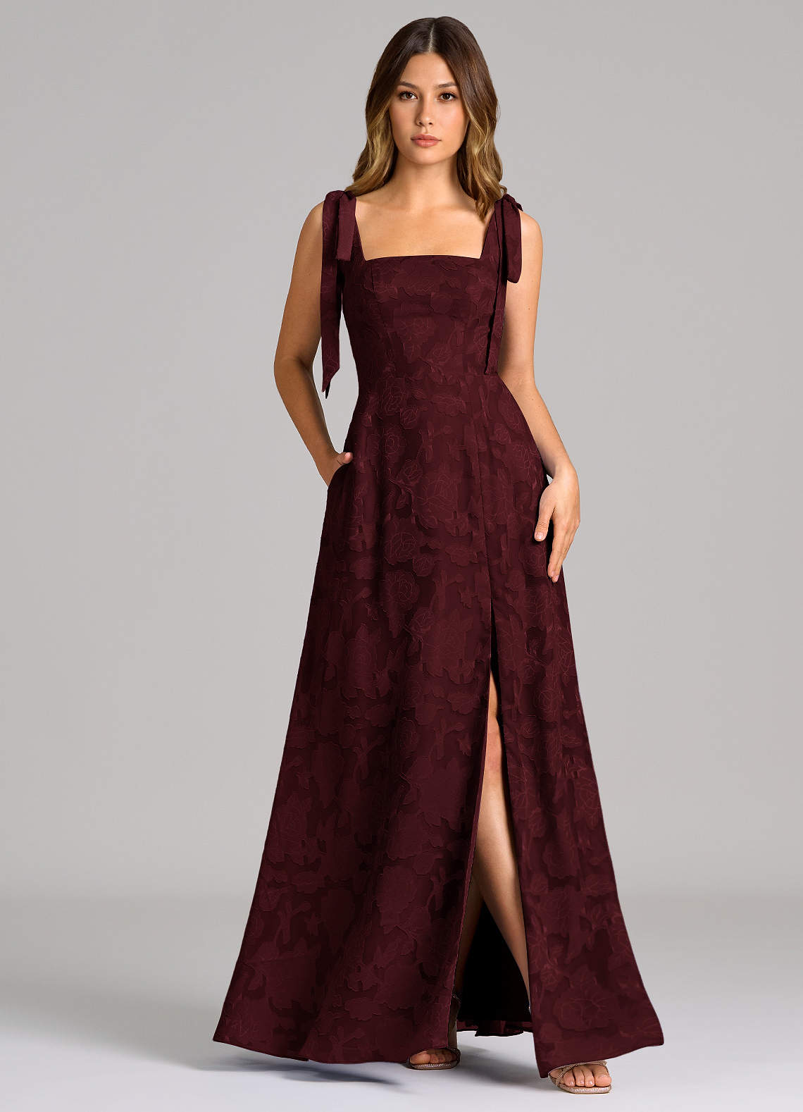 A-Linie mit Taschen Blumen-Burnout Kleid Cabernetrot