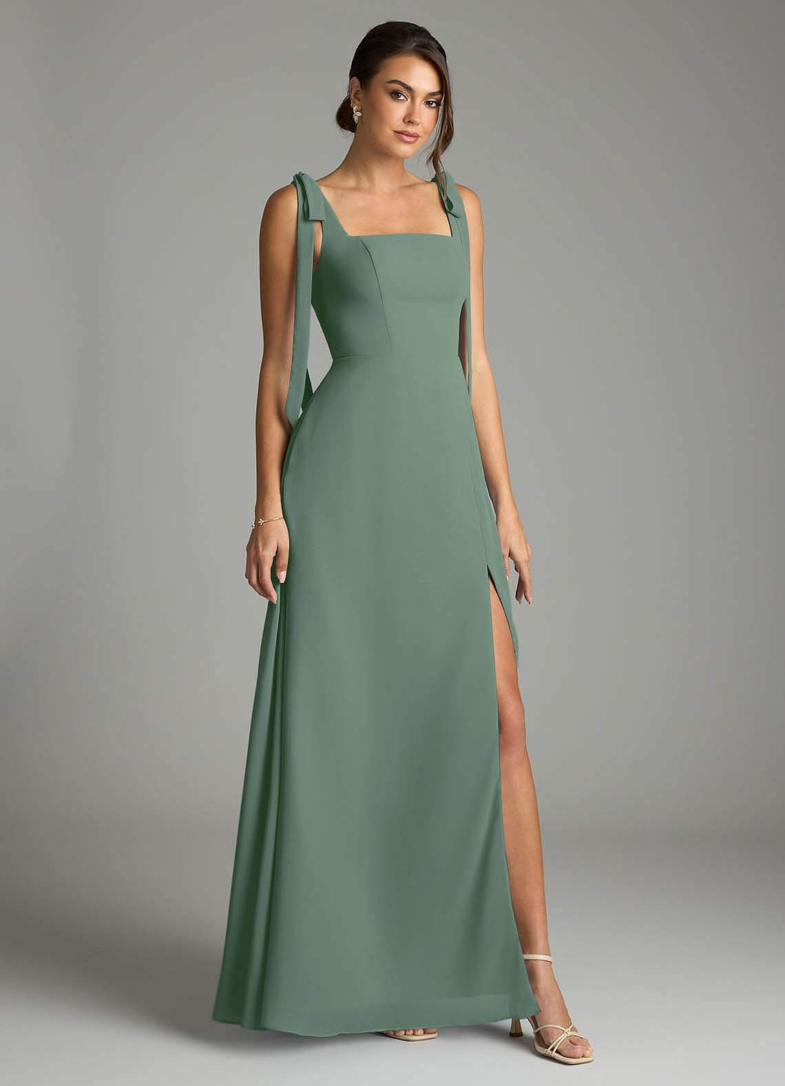 Wandelbar A-Linie mit Taschen Chiffon Kleid Eukalyptus