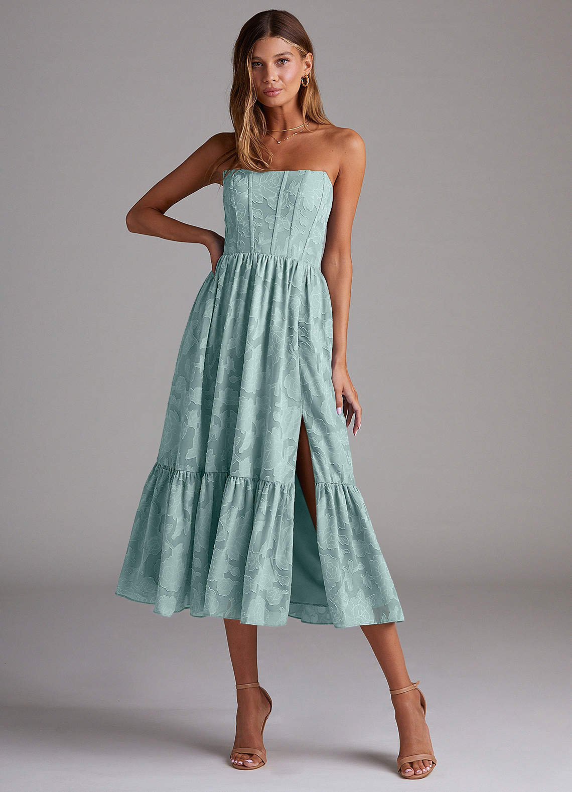 Wandelbar A-Linie Schulterfrei Blumen-Burnout Kleid Nebel