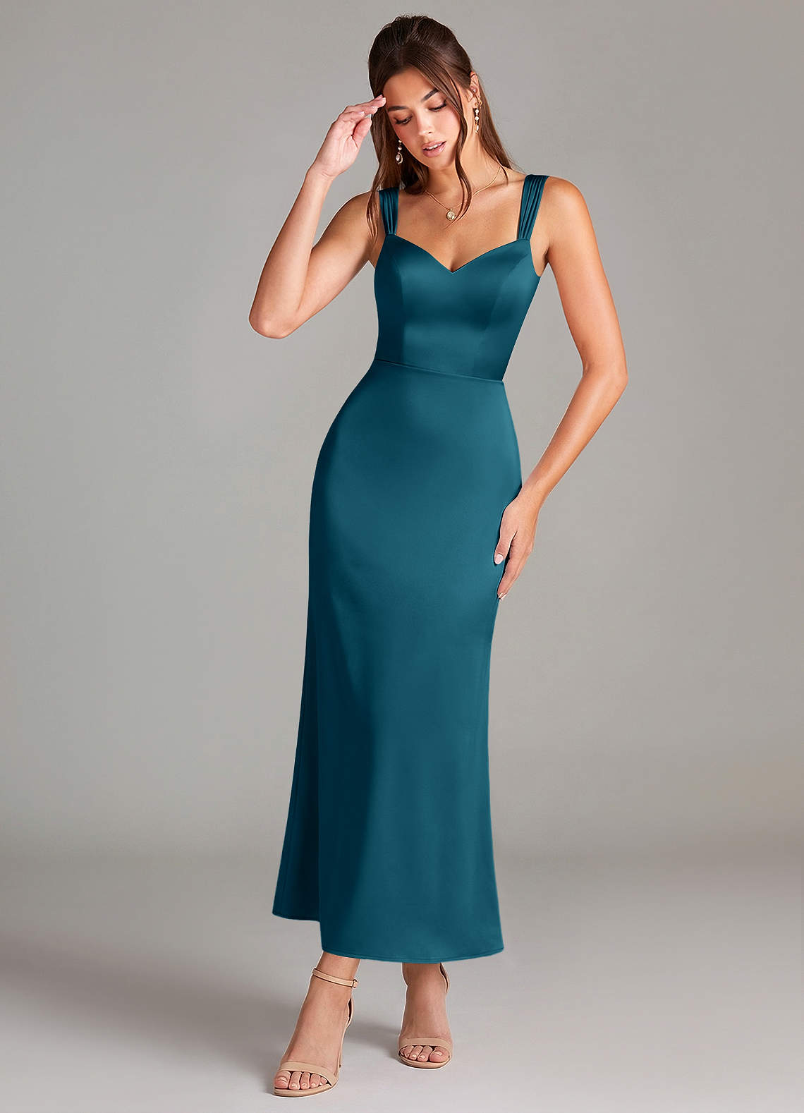 Etui Plissee Stretch-Satin Kleid Tintenblau