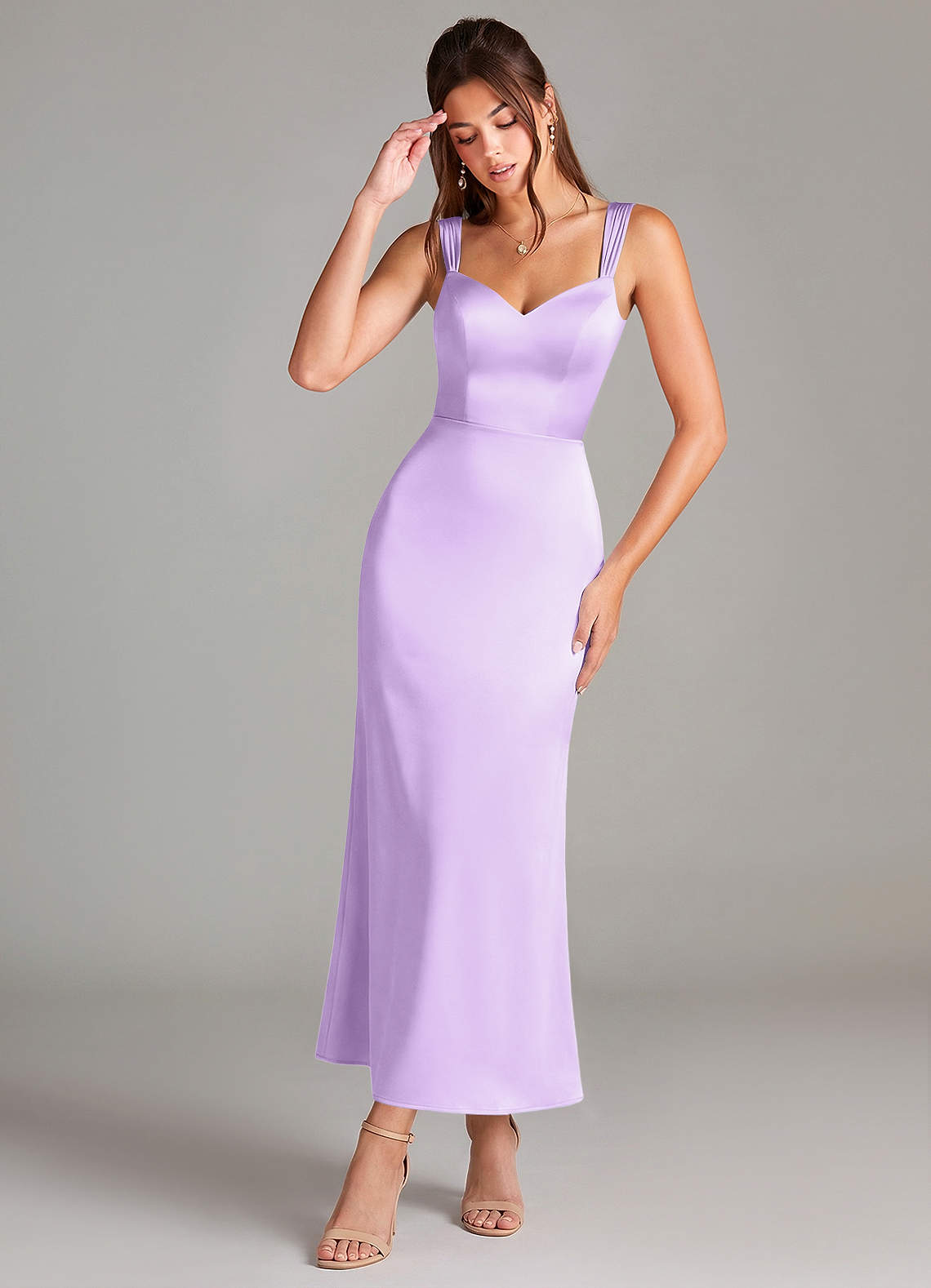 Etui Plissee Stretch-Satin Kleid Flieder