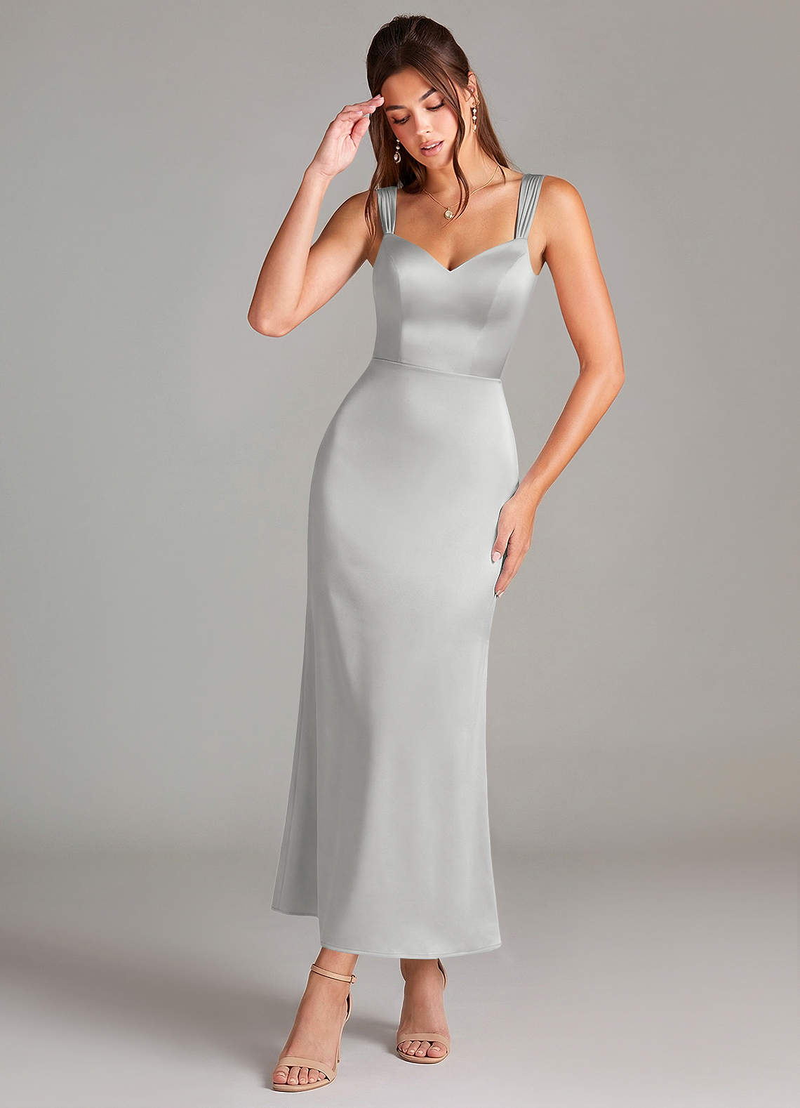 Etui Plissee Stretch-Satin Kleid Silber