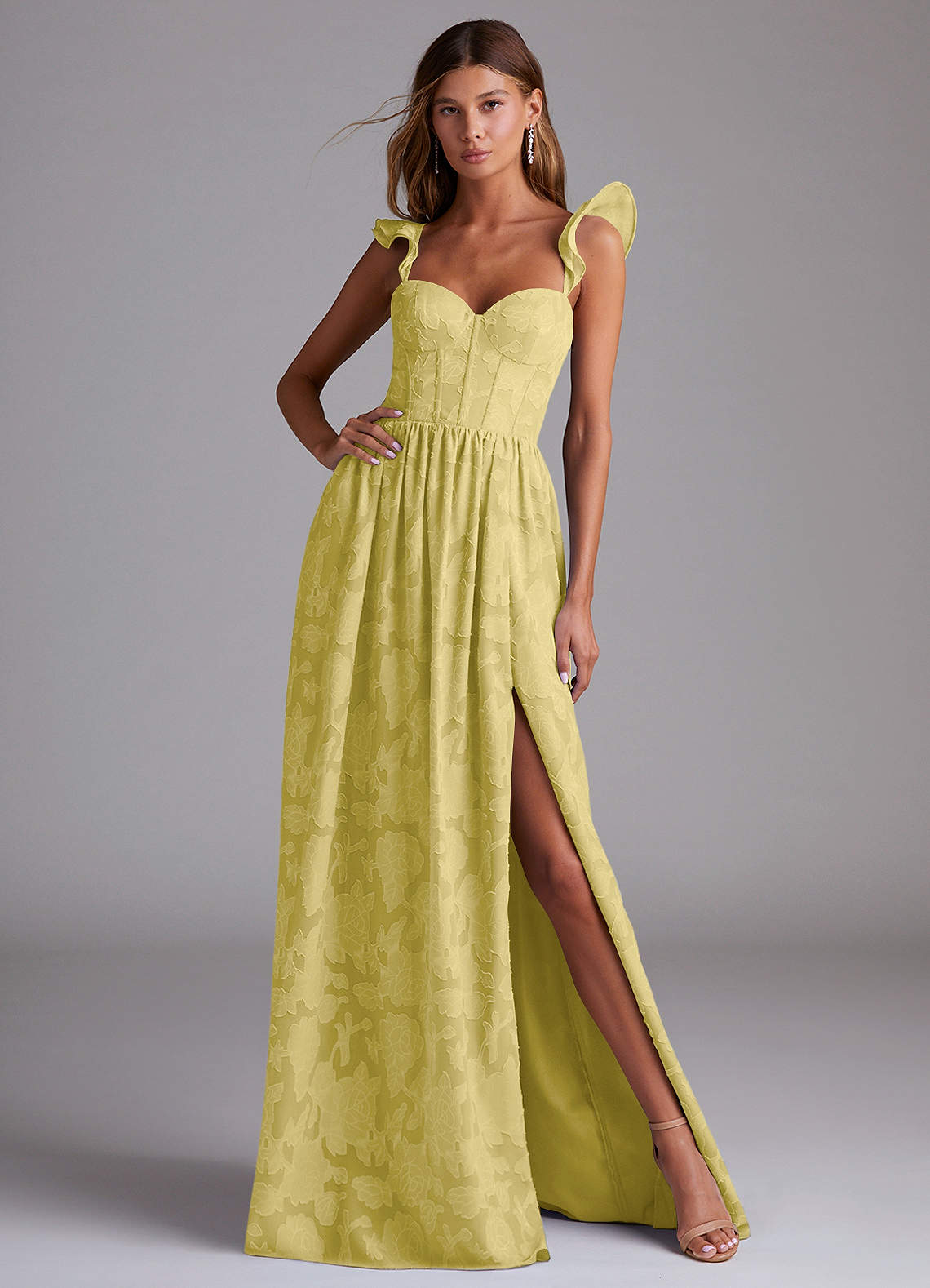 A-Linie Gestreift Blumen-Burnout Kleid Kanarienvogel
