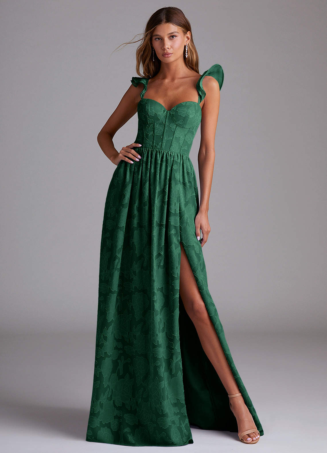 A-Linie Gestreift Blumen-Burnout Kleid Dunkelgrün