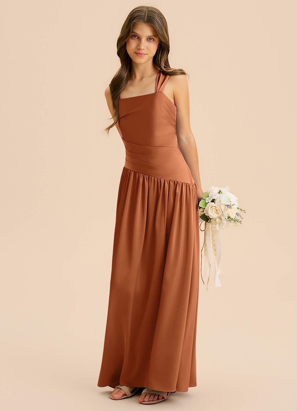 A-Linie Plissee Stretch-Satin Kleid Kupfer