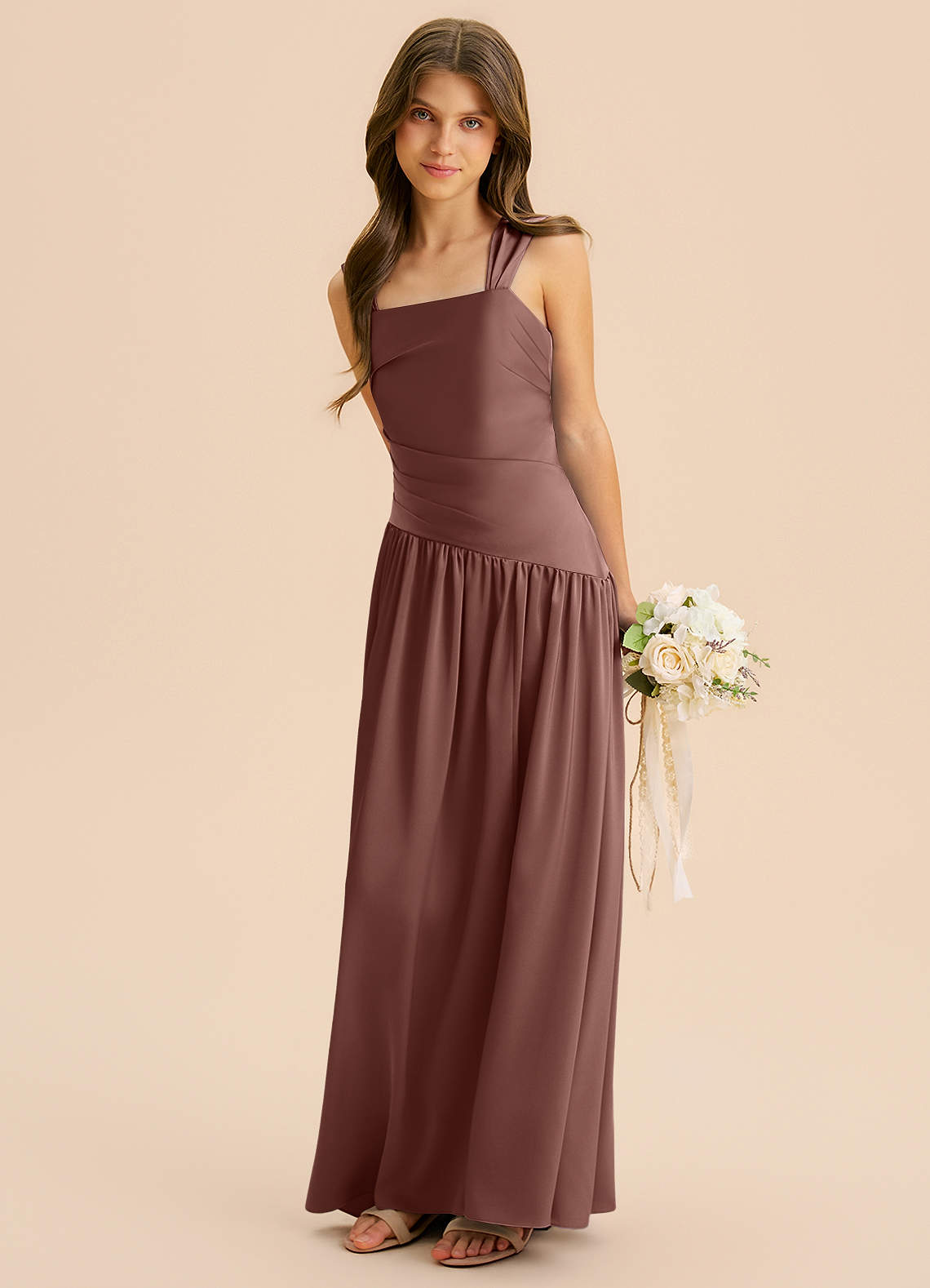 A-Linie Plissee Stretch-Satin Kleid Espresso
